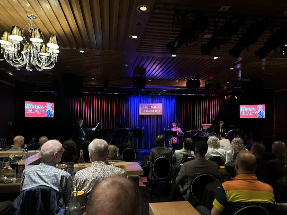 Feinstein’s at the Nikko is a cabaret venue inside the Hotel Nikko on Mason Street in Union Square. Named after vocalist and American Songbook preservationist Michael Feinstein, it seats about 130 at cocktail tables arranged around a small stage. The format is dinner or drinks with a show, in the supper club tradition.