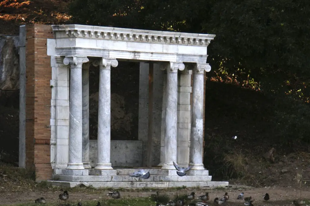 Six white Corinthian columns stand at the edge of Lloyd Lake in Golden Gate Park. They’re the only surviving piece of the A.N. Towne mansion, a grand Nob Hill home destroyed in the 1906 earthquake and fire. The columns were salvaged and moved to the park as a memorial. They’ve been standing at the lake’s edge ever since, reflected in the water on still mornings.