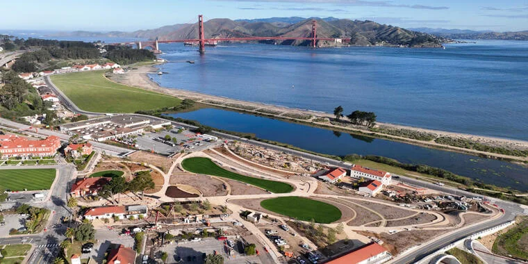 Tunnel Tops opened in July 2022 on top of the highway tunnels that carry traffic through the Presidio. Landscape architect Field Operations (the firm behind New York’s High Line) designed the 14-acre park to connect the Main Post of the Presidio to Crissy Field, and it immediately became one of the most popular public spaces in the city. Over 5 million people visited in the first three years.