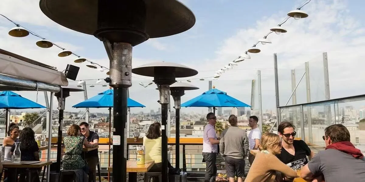 Mission rooftop bar above Lolinda with heat lamps, fire pits, and Latin American street food. Tequila and mezcal forward. Walk-in only.