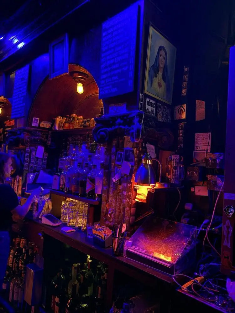 The booking leans punk, garage, soul, and oddball DJ nights. Photo strip booth in the back. Bingo on Thursdays. Always something happening.